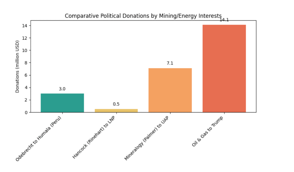 Comparative cases from Peru, Australia and the United States show that the interplay between natural resource wealth and political finance is global. Whether through Brazilian construction firms buying influence in Peru, Australian billionaires underwriting parties or U.S. oil tycoons funding presidential campaigns, the pattern is consistent: concentrated wealth seeks political returns.